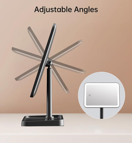 FUNTOUCH Vanity Mirror with Lights, Rechargeable 10X Magnification 3 Color Lighting Portable Tabletop Cosmetic Make Up Mirror, 360° Rotation Led Light up Mirrors with Storage,Black